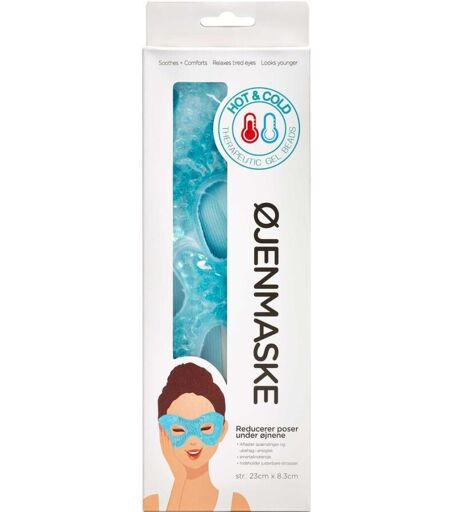 Jasper Hot & Cold Øjenmaske er en genanvendelig maske til øjnene, som aflaster spændinger og ubehag i ansigtet. Jasper Hot & Cold Øjenmaske er smertelindrende. Masken har justerbare stropper og former sig efter ansigtet. Masken dækker både øjne, pande og poser under øjnene. Bemærkning Kun til voksenbrug.Vær forsigtig, når masken tages ud af mikrobølgeovnen. Masken skal lægges til side inden brug efter opvarmning eller nedkøling, indtil den har opnået en temperatur, som huden kan tåle.Brug ikke masken mere end 20 minutter i træk, og hold minimum 20 minutters pause mellem hvert brug.Benyt ikke masken under søvn. Tjek huden hyppigt under brug.Benyt ikke på sensitiv hud eller åbne sår.Benyt masken med forsigtighed, når den er i kontakt med sensitiv hud.Instruktionerne skal følges nøje.Benyt den stofbeklædte side først.Perlerne må ikke komme i direkte kontakt med huden.må ikke overophedes.Der må ikke tilføres ekstra vægt eller tryk på produktet.Må ike indtages.Opbevares uden for børns og kæledyrs rækkevidde.Benyt ikke, hvis produktet lækker eller er gået i stykker.Hvis maskens indhold kommer i kontakt med øjnene, skal masken fjernes, og øjnene skylles straks. Kontakt derefter læge.Hvis smerte varer ved i mere end 7 dage eller forværres, skal læge kontaktes.Stop brugen i tilfælde af ubehag, en brændende fornemmelse, hævelse, udslæt eller andre forandringer i huden.Opbevar i fryseren eller i en lufttæt pose.Må kun håndvaskes. Overfladen renses med en fugtig klud eller svamp. Dosis og Anvendelse Kuldebehandling: Opbevar øjenmasken i fryseren eller køleskabet i mindst 2 timer, indtil den ønskede temperatur er opnået.Tjek om temperaturen er passende inden brug.Benyt den stofbeklædte side først for at undgå forfrysninger. Når kulden ikke længere er tilstrækkelig på den stofbeklædte side, kan masken vendes. Varmebehandling: Giv masken 10 sekunder i mikrobølgeovnen.Sørg for, at maskens indhold er ligeligt fordelt inden.Tjek om temperaturen er passende inden brug. Kanten af masken kan være varmere end midten.Hvis masken ønskes varmere, kan man give den 5 sekunders intervaller i mikrobølgeovnen. masser og vend masken 180 grader mellem intervallerne.Benyt den stofbeklædte side først for at undgå forbrændinger. Når varmen ikke længere er tilstrækkelig på den stofbeklædte siden, kan masken vendes. ...