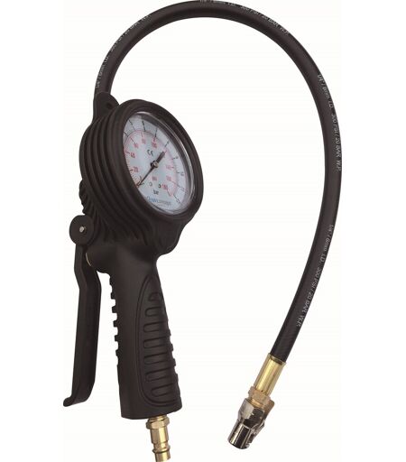 Pumpepistol med certificeret manometer En pumpepistol, hvor manometret er testet og lever op til EU standard 86/217/EEC. Pumpepistolen er udstyret med et manometer som gør det enkelt, at holde styr på hvor mange bar flowet er på. Manometeret viser fra 0-12 bar, så det er nemt at få reguleret dæktrukket på bilen, traileren eller traktoren ved blot at se på manometeret. Der medfølger en 500 mm. lang slange, så du let kan tilkoble pumpepistolen til kompressoreren ved hjælp af den påsatte klemnippel. Mærke: Flowconcept Bar: 0-12 barMål: Ø63 mm manometerMedfølger: 500 mm. slange m. klemnippelTestcerfikat EU standard 86/217/EEC ...