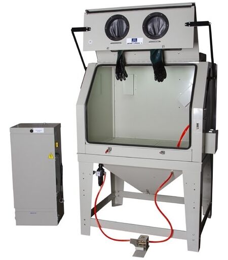 Effektiv og holdbar sandblæsekabine til alle slags blæseopgaver Med sandblæsekabinen 425A XL får du en kabine, der er rummelig og med masser plads til du kan udføre dine sandblæseopgaver – nøjagtigt og effektivt. 425A XL er designet med fokus på holdbarhed, stabilitet og funktionalitet. Den er opgraderet med en endnu kraftigere fødeslange og et sugebundstykke, der sikrer en kraftigere og mere jævn blæsestråle. Sanblæsekabinen har en lettilgængelig indgang, der giver hurtig adgang til arbejdsområdet, så du nemt kan placere dine genstande i kabinen. Kabinen er udstyret med avanceret suge- og filtreringsteknologi, der sikrer at støv og affald bliver fjernet, så dit arbejdsområde er renere og mere effektivt. Derudover er der lys i kabinen, så du har optimale arbejdsforhold. Kabinen er velegnet til alle typer blæseopgaver, og kan blæse med f.eks. stålsand, aluminium oxid og glasperler. Specifikationer: Udvendige mål: 132x92x176(H) cm Indvendige mål: 117x86x72,5(H) cm Luftbehov: 450-550 l/min Max tryk: 8 bar / 125 psi Strøm: 220V 1 faset Filtermål: 45x33,5x105(H) cm Filtrering: ≥ 5 my / ≥ 8 my Luftmængde: 114 m3/time / 900 m3/time Cyklon 425AC: 55,5x46x113(H) cm ...