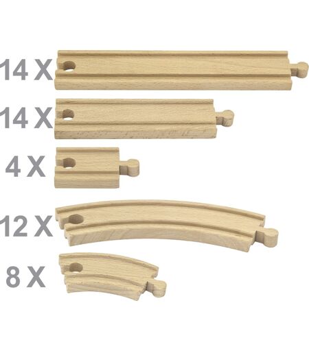 VIGA Togskinner – 50 stk. Disse togskinner fra VIGA er lavet i træ, hvilket gør dem meget robuste. Togskinnerne har forskellige længder, og der medfølger også buede skinner, så der kan laves sving. Skinnerne er kompatible med andre togbaner og kan derfor både bruges til at starte en ny samling af skinner eller til at supplere med nye skinner til en eksisterende togbane. Specifikationer: Produkttype: Togskinner Antal skinner: 50 Stimulerer finmotorik og hånd-øje koordination Rolleleg og fantasi Oplagt til børn fra 3 år Materiale: Træ Kompatibel med andre togbaner Styrk finmotorikken og hånd-øje koordinationen At samle togbanen er ikke bare sjovt, men også afslappende. Togbanesættet kræver koncentration at samle, og banen kan samles på mange forskellige måder. Dit barns finmotorik stimuleres, når skinnerne skal samles, og samtidig stimuleres hånd-øje koordinationen, som er barnets evne til at få øje og hånd til at samarbejde, når der udføres en opgave. ...