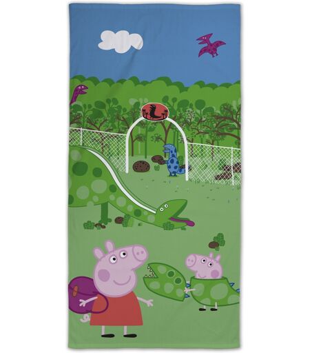 Licens Gurli Gris håndklæde - 70x140 cm - 100% bomuld - Blødt badehåndklæde med Gurli Gris, Gustav Gris og dinosaur