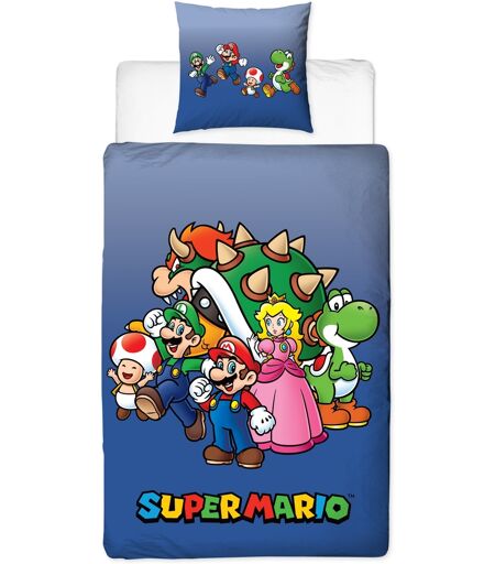 Licens Super Mario sengetøj - 150x210 cm - The team - Dynebetræk med 2 i 1 design - 100% bomuld
