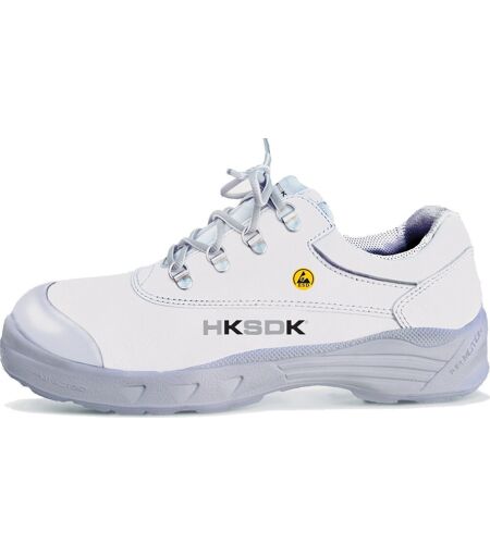 Komfort og sikkerhed til den hvide sektor HKSDK H3 sikkerhedsskoen er skabt til at levere optimal komfort og beskyttelse i den hvide sektor, hvor fleksibilitet og bevægelsesfrihed er altafgørende. Denne all-round sko kombinerer HKSDK’s anerkendte AIR-sål med en let og fleksibel konstruktion, der gør den ideel til arbejdsdage, hvor komfort og ergonomi er i fokus. H3 er designet uden sømværn for ekstra lethed, men med den nødvendige tåbeskyttelse, så dine fødder er sikre dagen lang. Med HKSDK H3 sikkerhedsskoen får du en komfortabel og robust løsning, der er skræddersyet til kravene i den hvide sektor. Det er den perfekte sikkerhedssko til dig, der ønsker komfort og beskyttelse på én gang. Specifikationer: Tåbeskyttelse: Aluminium tåkappe Sømværn: Ingen sømværn, hvilket giver øget fleksibilitet og lethed Antistatisk: ESD-certificeret for at forebygge statisk elektricitet Skridfasthed: SRC-certificeret skridsikker sål Modstandsdygtighed: Resistens mod olie, syre og benzin Varmeresistens: Op til 150°C Godkendelse: EN ISO 20345 S1 SRC ESD ...