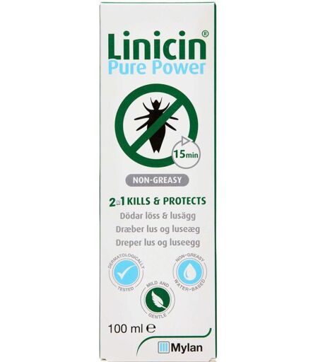 Linicin Pure Power (markedets eneste vandbaserede lusemiddel) dræber både lus og luseæg samt forebygger nye luseangreb på kun 15 minutter. Linicin Pure Power er vandbaseret (fedter ikke håret) og består af mere end 92% biologisk nedbrydelige ...