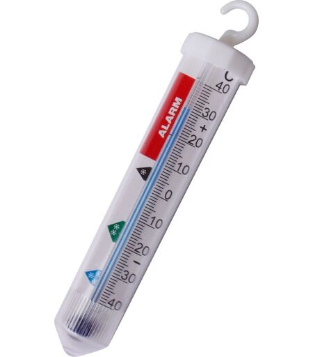 KøleskabstermometerTermometer til at have i køleskabet eller fryseren. Termometeret kan måle fra -40°C til +40°C. Det lille termometer er desuden udstyret med en indbygget krog, så det kan hænge på en hylde.Termometer til køleskab og fryserTåler -40 til 40 graderVægt: 0,0095 kg. ...