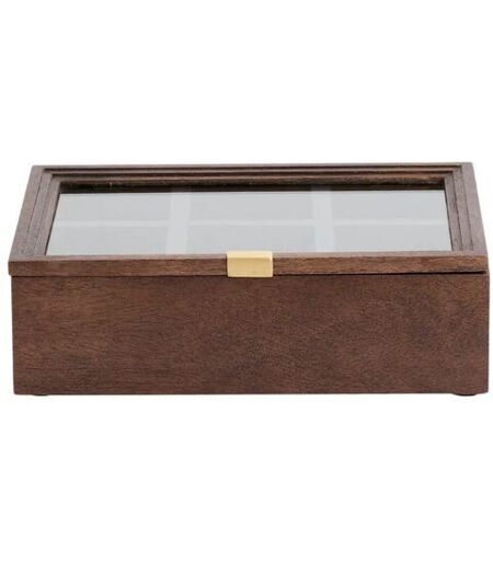 Nordal PUTO Opbevaringskasse Med Låg 8,5x26,5 cm - Natur PUYO opbevaringsæsken er et elegant og funktionelt stykke, der er skabt til at organisere og opbevare dine små genstande på en stilfuld måde. Fremstillet af bejdset mangotræ og udstyret med et smukt glaslåg, tilbyder denne opbevaringsæske både et naturligt og raffineret udseende. Det lille messingfarvede håndtag på kanten af låget tilføjer et subtilt strejf af elegance og gør det let at åbne æsken. Med 6 separate rum giver PUYO opbevaringsæsken dig mulighed for at organisere dine ting på en struktureret og overskuelig måde. Uanset om du bruger den til at opbevare tebreve, kaffekapsler, kreativt materiale eller smykker, vil PUYO opbevaringsæsken være en praktisk og stilfuld tilføjelse til dit hjem. Med sit smukke design og funktionelle opdeling vil den ikke kun holde dine ting organiserede, men også tilføje en touch af elegance til din indretning. Bemærk: da mangotræ er et naturmateriale, kan der forekomme variationer i kassens udseende. Designer: Nordal Materialer: Mangotræ, glas, messinghåndtag Mål: Højde: 8,5 cm Bredde: 26,5 cm Dybde: 17,5 cm Farve: Natur ...