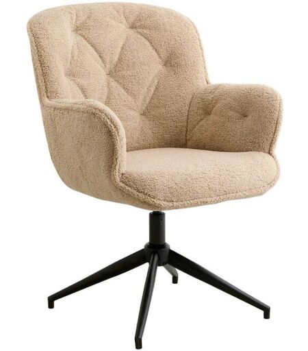 Nordal LEA Kontorstol - Boucle/Beige LEA kontorstol kombinerer elegance og funktionalitet med sit bouclé-betræk og sorte metalunderstel. Denne stol er designet til at tilbyde maksimal komfort med sin gode siddekomfort og praktiske armlæn. Sædet kan rotere 360 grader, hvilket gør den ideel til dynamiske arbejdsmiljøer. Stolen har en sædehøjde samt sædedybde på 51 cm der giver plads til komfort og en maximal belastning på 150 kg. LEA kontorstolen er en stilfuld og funktionel tilføjelse til ethvert kontor eller hjemmekontor, der elegant balancerer komfort, funktion og design. Designer: Nordal Materialer: Metal, bouclé tekstil og skum Mål: Højde: 93 cm Bredde: 67 cm Dybde: 64 cm Sædehøjde: 51 cm Sædedybde: 51 cm Farve: Brun Max belastning: 150 kg. ...