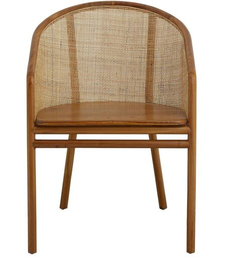 Nordal MOSSO Dinner Chair H: 77 cm - Light Brown Fin og elegant spisebordsstol fra Nordal. Denne spisebordsstol er lavet af poleret teaktræ med et ryglæn af rattan, hvilket vil give den et klassisk udtryk kombineret med et moderne og komfortabelt designudtryk. Stolens lyse farve giver den et tidsløst design og giver rummet et naturligt look, som vil passe perfekt til tidens tendenser. Den kan nemt bruges rundt om et spisebord i samme stil, men kan også nemt placeres omkring et mørkt spisebord, for at skabe en dynamisk indretning. Design: Nordal Materiale: Teak Rattan Mål: B: 58 cm D: 54 cm H: 77 cm Sædehøjde: 45,5 cm Sædedybde: 40,5 cm ...