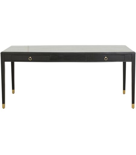 Nordal EMS Skrivebord med 2 skuffer 179x90 cm - Black Wood Smukt skrivebord fra danske Nordal. Dette smukke oldschool skrivebord har både gyldne håndtag og detaljer ved fødderne, som gør den meget elegant. Bordet er nyttigt og helt perfekt til hjemmekontoret. Samtidig indeholder den 2 skuffer, som er perfekte til opbevaring af vigtige papirer eller skriveredskaber. Design: Nordal Mål: H: 77 cm B: 90 cm L: 179 cm Vægt: 45,00 kg Materiale: Mango wood, MDF, brass details ...