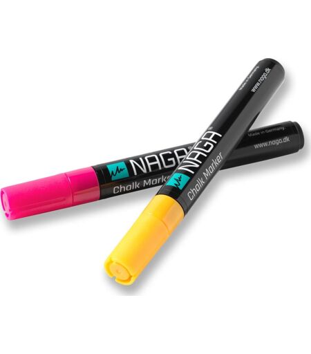 NAGA Kridtmarker, 4,5 mm – til dekorativt arbejdeSlip kreativiteten fri og udforsk mulighederne med disse kridtmarkere fra NAGA. Chalkmarkerne kan skrive nemt og glidende på glas, vinduer, blanke tavler, spejle og andre glatte overflader, hvilket gør dem perfekte til dekorativt arbejde. Uanset om det er til professionelle eller kreative formål, du skal bruge en kridtmarker til, sikrer NAGA for at du har en god og pålidelig marker, der passer til dine ønsker og behov.SpecifikationerFarve: Pink og OrangeAntal: 2 markereVendbar spids fra rund til skråStregbredde: 4,5 mmFlydende og vandbaseret kridtmarkerDry EraseNem at viske ud, når teksten er tør med NAGA tavleviskerMarkeren bør opbevares vandret Velegnet til glas, vinduer, blanke tavler, spejle og andre glatte overfladerKreativ marker med mange mulighederNAGA flydende og vandbaserede kridtmarkere er nemme og inspirerende at bruge og arbejde med, idet de har en intens og flot farve, samt en vendbar spids fra rund til skrå med en stregbredde på 4,5 mm. Det betyder også du med markerne sikrer at dit budskab bliver fremtrædende og synliggjort på en attraktiv måde. Du kan dermed med fordel bruge markerne i mange forskellige miljøer – det gør dem perfekte for både de professionelle forretningsfolk og de kreative hobbyister i det private hjem.Chalkmarkerne er lette at anvende og af typen Dry Erase. Det betyder at du nemt kan viske illustrationer, tekster og tegn ud og lave rettelser blot ved brug af en tør klud eller med NAGA tavlevisker.Sådan klargør du din NAGA kridtmarkerInden brug skal chalkmarken rystes godt med hætten på. Tag derefter hætten af og pres spidsen ned mod et stykke papir, og pump markeren indtil blækket flyder ud til spidsen. Brug derefter markeren til at skrive eller tegne med og lad den tørre i et par minutter. Husk at sætte hætten godt på efter brug og opbevar markeren vandret. ...