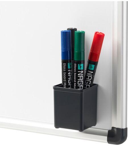 NAGA magnetisk boks til whiteboard, 5 x 5 x 6 cm 5 x 5 x 6 cm. Sort plast magnetisk boks til Whiteboard og Metaltavler. Brug boksen som penneholder. Bemærk venligst! Denne boks er IKKE Super Stærk, og kan derfor ikke anvendes på glastavler. ...