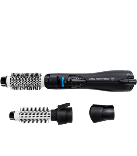 OBH Nordica BAT Airstyler PRO er en professionel varmluftsbørste i serien Björn Axén Tools by OBH Nordica, der er udviklet og designet til en komplet stylingoplevelse. Denne styler hjælper dig med stylingen hele vejen fra vådt hår til færdige krøller med en fantastisk fylde og et naturligt look. Airstyler Pro er udstyret med ioniseringsfunktion, der giver håret en smuk glans og samtidig forhindrer kruset hår. Airstyleren har desuden pigge, der kan trækkes ind, så børsten aldrig er svær at få ud af håret, tre varmetrin og to hastighedsindstillinger. Den er også udstyret med en cool shot-funktion til at sikre, at frisuren holder. Den ekstra lange ledning på tre meter giver desuden mere fleksibilitet til at style håret. Uanset om du er hjemme eller på farten, kan du stole på Airstyler Pro. Den føntørrer, styler og krøller håret, mens dens kompakte størrelse gør den nem at medbringe og opbevare. Alt du behøver i ét stylingværktøj. Ved køb af Airstyler Pro medfølger der et koncentratormundstykke til at tørre fugtigt hår, et mundstykke med pigge, der kan trækkes ind, til at rede håret og et varmebørstemundstykke til at forme håret og skabe fyldige krøller. Start med at fortørre håret med koncentratormundstykket, hvis håret er meget fugtigt, men brug ellers børstemundstykket med pigge uden yderligere forberedelse. Takket være piggene, der kan trækkes ind, er der ikke risiko for, at børsten sætter sig fast i håret. Form derefter krøller med varmebørstemundstykket, og giv håret fylde. Brug cool shot-funktionen til at sikre, at frisuren holder. Fordele: Varmluftbørste Ioniseringsfunktion Giver glans 3 varmetrin 2 hastigheder Cool-shot funktion 3 meter ledning Koncentratormundstykke Varmemundstykke ...