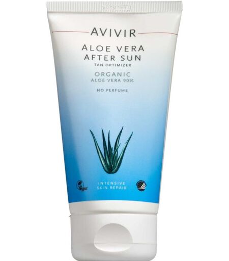 Avivir Aloe Vera After Sun lotion er et unikt produkt, som ikke alene reparerer og plejer din hud efter ophold i solen, men tillige forbedrer hudens evne til at selv at danne pigment, så man nemmere bliver brun af den sol, man får den næste dag. Derfor er det oplagt at benytte produktet dagene op til en ferie for at klargøre huden. Svanemærket og vegansk. Dosis og anvendelse Anvendes til ansigt og krop efter ophold i solen. ...