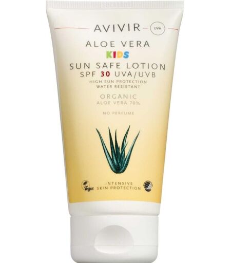 AVIVIR Aloe Vera KIDS Sun Safe SpF 30 sollotion er en sollotion beregnet til børn. Produktet er vandafvisende, uparfumeret og ...