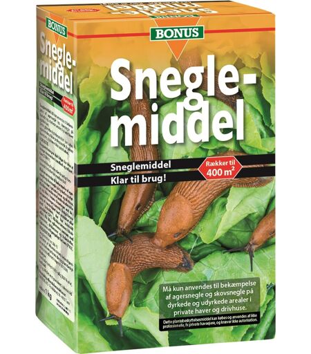 Effektivt sneglemiddel – klar til brug BONUS® Sneglemiddel er en effektiv løsning mod alle typer snegle i haven – også dræbersnegle. Kornene er klar til brug og nemme at strø ud på de angrebne områder. Sneglene tiltrækkes af kornene, og efter indtagelse stopper de med at tage føde til sig og dør kort tid efter. Sneglemidlet kan anvendes i haver, på dyrkede og udyrkede arealer, i væksthuse og på stier omkring boligen. Det er fremstillet af jerndioxid, som er ugiftigt for mennesker og husdyr, men bør kun anvendes i områder, hvor det ikke kan skade ønskede sneglearter i vandløb og lignende. Specifikationer: Indhold: 500 g (dækker op til 100 m²) Anvendelse: Mod agersnegle, skovsnegle og iberisk skovsnegl (dræbersnegle) Bruges i haver, væksthuse, på stier og dyrkede/udyrkede arealer omkring boligen Fremstillet af jerndioxid, ugiftigt for mennesker og husdyr ...