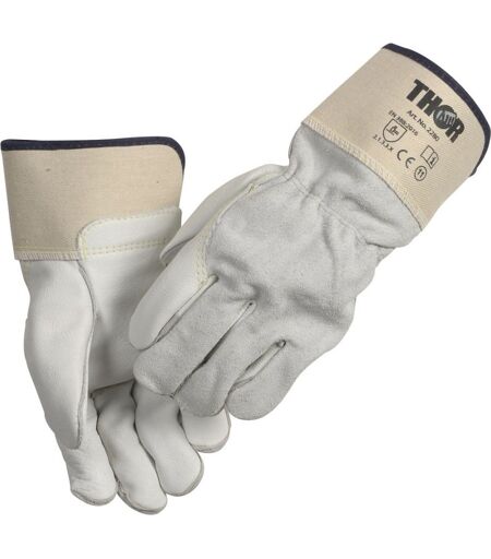 Thor OksehudshandskeBlød oksehudshandske syet med kevlar tråd, med let for i håndfladen.Anvendelse i letter industri, byggeindustri, auto, svejseopgaver, allround.A Grade spalt overhåndBlød oksehudsskind i håndflade8 cm manchetLet foret håndfladeGod pasformHøj slidstyrke syet i kevlar trådGodkendelse: EN420EN 388 ...