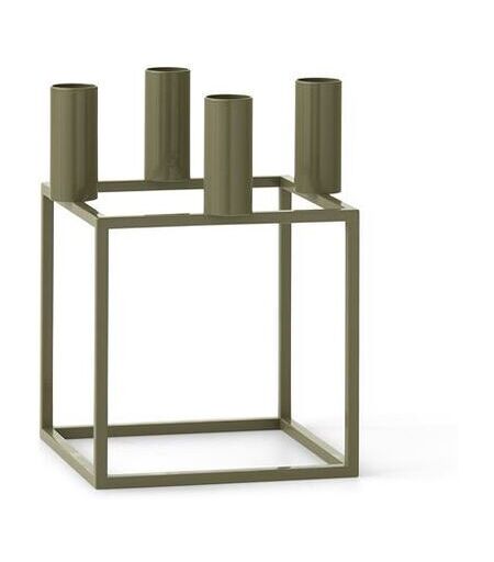 Audo Copenhagen Kubus 4 Stage 14x14 cm - Olive Den klassiske Audo Kubus 4 stage er designet af Mogens Lassen i 1962. Da Mogens Lassen designede Kubus, var disse forbeholdt familien og de nærmeste arkitektvenner. I dag har Kubus opnået status som et moderne internationalt designikon. Stagens enkle og minimalistiske design passer til de fleste omgivelser og vil være et dekorativt element i indretningen. De rene linjer og slanke design gør, at Kubus får et let og elegant udtryk som både vil pynte i vindueskarmen, på reolen, hylden, spisebordet eller hvor end du påtænker at denne vil pynte hjemme hos dig. Kombiner Kubus med stearinlys i dine yndlingsfarver og skab et personligt udtryk. Det helt specielle ved Kubus er, at den kan pynte i hjemmet året rundt. Ved specielle højtider, såsom påske kan du med fordel tilføje stearinlys i pastelfarver og eventuelt hænge små påskeæg i stagen. Til jul kan du tilføje stearinlys i røde, hvide og grønne nuancer og eventuelt pifte det op med gran, kogler og små julekugler - Kun fantasien sætter grænser. Design: Mogens Lassen Design år: 1962 Materiale: Lakeret stål Mål: L: 14 cm B: 14 cm H: 20 cm Rengøring: Vend stagen med lyseholderne ned ad, og placer den på en bageplade med bagepapir stående på lyseholderne. Sættes i en 75 grader varm ovn i 15-20 minutter. Stagen tørres herefter af med en fugtig klud. ...