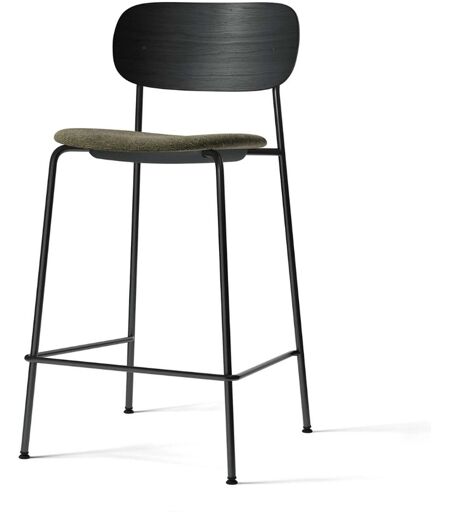 Audo Co Counter Chair Seat Upholstered - Black Oak/Moss 001 Co Counter fra Audo er en elegant stol og er et samarbejde mellem Norm Architects og Ela Van Hoorebeeck. For at sikre komforten og designet på Co Counter stolen er der et bredt ryglæn og generøst sæde, som er polstreret på slanke robuste stålrør. På stolen er der placeret en fodstøtte for ekstra komfort og stabilitet. Som et ekstra plus, så kan stolene stables, når de ikke bliver benyttet. OBS: Miljøbillederne viser ikke stolens materiale eller farve, men dens størrelse og mulige anvendelser i indretningen. Designer: Norm Architects og Ela Van Hoorebeeck Mål: H: 94,5 cm. . B: 49,4 cm. D: 48,2 cm. Materiale: Stel: Pulverlakeret svejset stål Sæde og ryg: Formpresset bøg og egetræsfiner Polstreret: CAL117 foam (20mm 45N / 40 kg and 10mm, 32N / 40 kg) ...