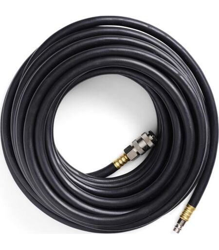 Kompakt kompressorslange Holdbar Probuilder trykluftslange med en kraftigt trykluftsbelastning på hele 1200 PSI / 80 bar. Brugeren får altså en yderst solid kompressorslange. Kompressorslangen kommer også med lynkobling og nippel, som gør det nemt at tilkoble slangen. Specifikationer: Brand: Probuilder Farve: Sort Materiale: Gummi Gummislange: længde 10 m x Ø12,5 mm. Gevindstørrelse: 1/4" Max. Arbejdstryk: 80 bar Maks trykluftbelastning: 1200 PSI Arbejdstemperatur: -40° til 60° Vægt: 1,14 kg. ...