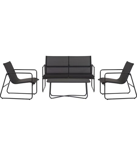 Simpelt sofasæt til 4 personer Ønsker du at skabe en lækrog på din arbejdsplads eller blot et sted, hvor dine medarbejdere kan sidde og fordybe sig, så er Theodor sofasæt fra ENVY oplagt. Dette sæt indeholder en 2 personers sofa, to stole og et lille bord. Loungesættets stel er lavet af metal, mens sæde- og ryglæn er beklædt med textilen. Textilen er en slidstærk type polyester, der flettes og efterbehandles for at gøre den UV-bestandig. Det er også med til at bevare farveægtheden. Skidt og snavs kan vaskes af med lunkent vand og sæbe, og har ingen nævneværdig vedligeholdelse. Bordet har en flot glasbordplade. Farve: Sort Materiale: Metal, Textilen, Glas Dimensioner, sofa (BxDxH): 112 x 76 x 75 cm Dimensioner, stol (BxDxH): 60 x 76 x 75 cm Dimensioner, bord (BxDxH): 84 x 44 x 38 cm Siddehøjde: 38 cm Sædedybde: 47 cm Armlænshøjde: 53 cm Maks belastning, sofa: 240 kg. Maks belastning, stol: 120 kg. Vægt: 21,5 kg. Bemærk, at Lomax anbefaler, at havemøblerne opbevares indendørs uden for sæsonen. ...
