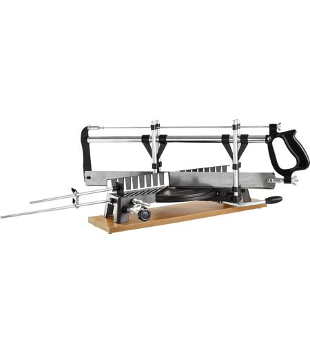 Komplet geringssav med klinge og bord Geringssav med klinge og bord. Med en geringssav kan du save meget præcist i vinkler og med konstruktionen i metal kan du være sikker på det er præcist hver gang. Saven har en skruetvinge og stop. Specifikationer: Brand: Probuilder Materiale: aluminium/stål Klinge størrelse: 550 x 45 mm Bordplade (LxBxH): 418 x 105 x 100 mm Max skærehøjde: 12 cm Max skære bredde ved 45 grader: 110 mm Max skære bredde ved 90 grader: 160 mm Vægt: 3,5 kg. ...