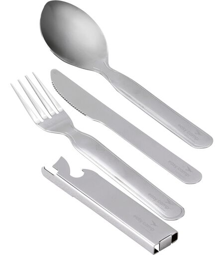 Travel Cutlery Deluxe fra Easy Camp er et sæt rejsebestik bestående af en kniv, gaffel, ske, flaskeåbner og dåseåbner. Sættet pakkes sammen pænt for nem opbevaring og transport, hvilket gør det ideelt for dem, der værdsætter bekvemmelighed og funktionalitet på deres rejser ...