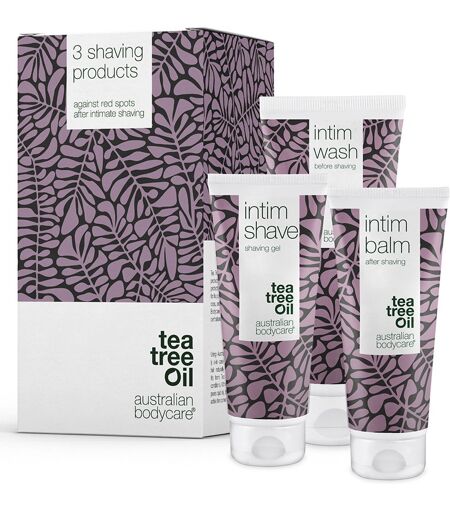 Australian Bodycare 3 Shaving Products er en sampak med 3 produkter, som alle arbejder på at minimere irritation, kløe, røde knopper og indgroede hår ved intimbarbering. Så hvis det er problemer du døjer med, så er denne pakke det perfekte valg til dig! Sættet indeholder: 1 stk. Australian Bodycare Intim Wash 200 ml 1 stk. Australian Bodycare Intim Shave 100 ml 1 stk. Australian Bodycare Intim Balm 100 ml ...
