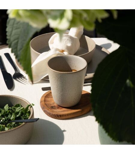 Brænder du fingrene? Med RAW termokrus holder både kaffen varm og undgår at brænde dine fingre. RAW termokrus er fremstillet efter en særlig innovation måde. Det betyder, at krusene er konstrueret i dobbeltvægget stentøj. Mellem de to vægge er et isolerede hulrum, der sørger for, at RAW termokrus aldrig bliver varmt at holde på. Den smukke jordfarve lader tankerne vandre til de nordiske klitter langs kysten, hvor du kan mærke den friske luft og den nordiske natur. Sandy Beige er kendetegnet ved sin unikke glasur med små, brune, næsten gnistrende prikker, der varierer fra produkt til produkt. Det er et varmere touch til RAW universet og er perfekt til det stilfulde, moderne borddækning. Materiale: Stentøj Farve: Sandy beige Højde: 10,5 cm Volume: 25 cl Vægt: 300 g Tåler opvaskemaskine, mikroovn, ovn og fryser (må ikke udsættes for store, pludselige temperaturforskelle) Ridsefrit (brugsspor kan oftes fjernes med wienerkalk) ...
