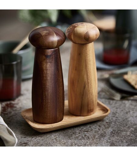 Elegant og funktionelt kværnsæt RAW salt- og peberkværnsættet er fremstillet i teaktræ, hvor der er skabt en smuk formgivning med et skandavisk udtryk – der passer perfekt både til madlavning og borddækning. Sættet er udstyret med en keramisk kværnindsats fra CrushGrind®, som kan justeres alt efter om man ønsker fint eller groft resultat. Denne er udviklet til at kunne kværne såvel salt og peber, samt alle andre typer tørrede krydderurter og krydderier – så du kan putte netop din favorit krydderiblanding i. Sæt med salt-/peberkværn og bakke Materiale: Teak Farve: Natur Højde: 18 cm Keramisk, justerbar CrushGrind® kværn ...