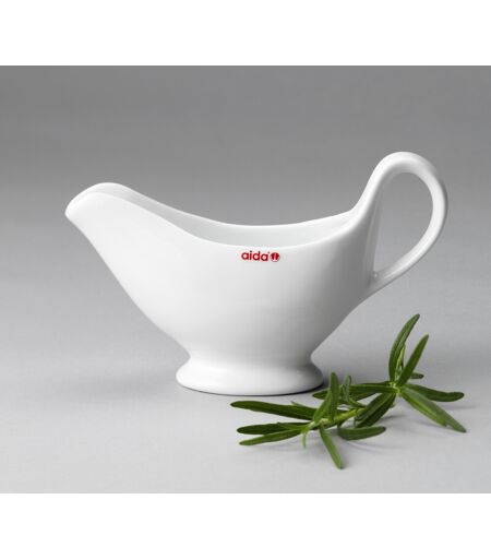 Aida Aroma saucekande 35 cl Klassisk sauceskål i holdbart hvidt porcelæn fra Aida. Saucekanden har et enkelt design som pynter på ethvert bord, og den er let at rengøre, fordi den kan gå i opvaskemaskinen. Det gør sovsekanden oplagt til institutioner, cafeer, restauranter, forsamlingshuse og storkøkkener. Brug den klassiske sovsekande til en pæn servering af den brune sovs, rødvinssauce, bearnaise, hollandaise osv. Kandens hank gør den nem at hælde af, og det praktiske og funktionelle design giver den helt rette mængde sovs. Farve: Hvid Materiale: Porcelæn Højde: 13 cm Diameter: 21 cm Kapacitet: 35 cl Tåler maskinopvask Aida Aroma Gastromi er et velkendt og populært stel som er brugt i mange restaurationer, institutioner og hjem. Stellet har rene og klassiske linjer som gør sig godt på ethvert bord. Det er et sikkert valg hvis du ønsker holdbare gastromiprodukter udviklet til daglig brug. ...