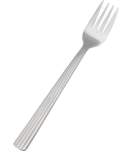 Aida Groovy gafler - elegant design med cool kant Aida Groovy er uden tvivl et godt valg, når det daglige bord skal dækkes! Groovy bestiksættet har et eksklusivt design med et twist, som understreges af de horizontale striber langs skæftet og de enkelte deles relativt brede form. Det giver Aida Groovy stellet et elegant look som er både effektfyldt og robust, uden at det bliver for tungt. Alle de enkelte dele er fremstillet af blankt rustfrit stål. Det gør Aida Groovy oplagt til firmaets kantine og køkkenet, når det pæne frokostbord skal dækkes. Groovy stellets enkelte dele ligger godt i hånden, og de har en behagelig tyngde som skaber balance og gør bestikket let at bruge. Det gør Aida Groovy en stor fornøjelse af spise med, til hverdag og fest. Blank stål Mål: 19 x 1,5 (skæftes bredde) x 2,7 cm (gaffeltændernes bredde) Tåler maskinopvask ...