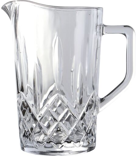 Aida Harvey Kande, Klar, 1,2L Gør serveringen elegant med Aida Harvey kande, der kombinerer klassisk design med moderne funktionalitet. Med inspiration fra facetslebne krystalglas er denne kande perfekt til servering af vand, limonade eller cocktails i både private og professionelle miljøer som restauranter og caféer. Det klare glas og de smukke mønstre skaber en eksklusiv præsentation, der fremhæver indholdet på en stilfuld måde. Farve: Klar Materiale: Sodaglas Højde: 19,0 cm Kapacitet: 120 cl Antal: 1 stk. Tåler: Opvaskemaskine Harvey-serien er fremstillet af sodaglas, som er let at vedligeholde og tåler opvaskemaskine. For at bevare glassene smukke i mange år anbefales det at vaske dem ved en temperatur, der ikke overstiger 55° C, og at bruge et kort program. ...
