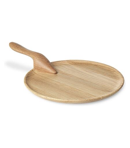 Kay Bojesen Menageri Serveringsplatte Ø:24,5 cm - Eg Fra Kay Bojesens Menageri serie får du her en elegant serveringsplatte. Den har et flot organisk håndtag, der ligger godt i hånden, når du skal servere. Platten kan f.eks. bruges som anretningsfad til pålæg, frugt, tapas, kage osv. Den fødevaregodkendte overfladebehandling gør nemlig produktet mindre modtageligt over for farveafsmittende fødevarer. Den er dog ikke ridse- og skærefast. I 1940'erne designede og producerede Kay Bojesen smukke og anvendelige produkter i træ til husholdningen - og det er herfra, at inspirationen kommer. Produktet er FSC certificeret Design Kay Bojesen Farve: Eg Materiale FSC-certificeret mat lakeret eg Mål Ø: 24,5 cm B: 35 cm H: 6 cm Rengøring: Tåler ikke opvaskemaskine ...