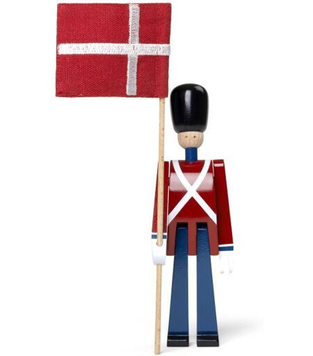 Kay Bojesen Fanebærer med tekstilflag 18,5 cm - mini I anledningen af Hendes Majestæt Dronningens 80-års fødselsdag 16. april 2020, lancererede Kay Bojesen en mini fanebærer. Fanebæreren er inspireret af et af Danmarks nationalsymboler fra Amalienborg Slotsplads, og har siden 1942 været en kær gæst på fødselsdagsmorgenbordet og et designikon i boligen i den fine håndmalede udgave. Den populære garder fra Kay Bojesen er her i en mini udgave på 18,5 cm, og er udstyret med et fint tekstilflag i bomuld. En god gaveide for livet til både børn og voksne. Designer: Kay Bojesen Materiale: FSC-certificeret Malet bøgetræ. Flag i bomuld. Farve: Blå Sort Rød Mål: H: 18,5 cm ...