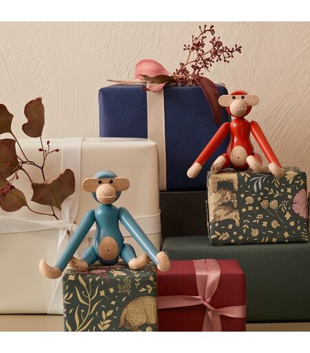 En ny abe til samlingen En farverig original i et både nostalgisk og nyskabende look. Kay Bojesens ikoniske Abe er en kendt og elsket humørspreder blandt store og små. Og med miniaben i bøgetræ malet i originale farver fra arkiverne bliver glæden kun endnu større. Den farvede miniversion er inspireret af farverne på et originalt tapet, Kay Bojesen designede til børneværelset i slutningen af 1940’erne. Og du fornemmer tydeligt masser af originalitet og retro vibes i farvernes støvede look, der flot fremhæver bøgetræets kølige udtryk. Aben er fremstillet i FSC®-certificeret bøgetræ, der træder frem på hænder og fødder, ansigt og mave og giver den nye miniabe en lidt kæk og ungdommelig karakter. De malede miniaber sprudler af glæde og opfindsomhed og sætter smukt og selvsikkert Kay Bojesens originale fortællinger i træ i en ny kontekst. Og samtidig forbliver de ikoniske i kraft af de klassiske farver fra Kay Bojesens originale univers, der gør miniaben perfekt som et legende element i en moderne indretning, hvor den vil skabe smil og stil med sin finurlige fremtoning og sit farverige udseende – uanset hvor den flytter ind. Et musthave til designelskeren der har alt. Eller til alle os, der slet ikke kan få nok af Kay Bojesens Aber og deres hyggelige selskab. Farve: Blå Materiale: Bøgetræ Højde: 9,5 cm Tørres af med en tør klud Bør ikke stå i direkte sollys FSC®-certificeret bøgetræ ...