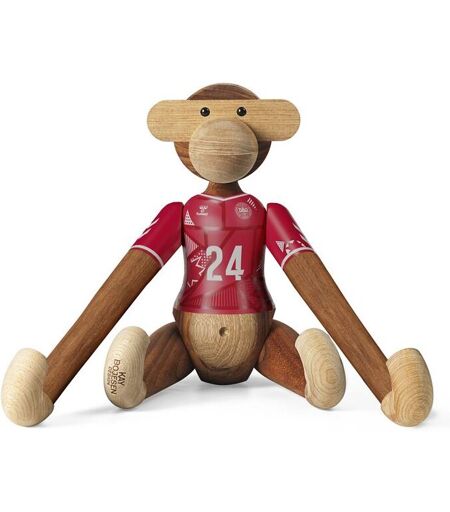 Kay Bojesen Abe X DBU Kvinde Stor H: 47 cm - Teak/Limbatræ Ny holdkammerat til alle i rødt og hvidt. Med Kay Bojesen Abe x DBU er to af de største danske nationalikoner gået sammen for med humor, kreativitet og det gode håndværk at hylde sammenholdet og stoltheden over at stå sammen side om side fra leg til landshold. Og ligesom fodboldens verden byder på rækker og ligaer fra miniput til megastjerne, så kan du selvfølgelig også få Kay Bojesen Abe x DBU i den størrelse, der lige præcis passer ind i dit fanbarometer. Aben fås iklædt kvindelandsholdets flotte påmalede hjemmebanetrøjer, der begge er fortolket i tråd med figurhistorien og Kay Bojesens DNA helt ned til den mindste detalje, så de to trøjedesigns står så tæt som muligt på originalen og alligevel med deres helt eget tvist. Aben kommer i det klassiske mix af FSC-certificeret teak og kontrolleret limbatræ. Samarbejdet med DBU sætter Kay Bojesens originale fortællinger i træ i en ny kontekst og tilføjer ydmygt og med et glimt i øjet et funklende nyt kapitel til en i forvejen smilende og levende designarv. Designer: Kay Bojesen Mål: Højde: 47 cm Bredde: 45 cm Dybde: 15,5 cm Materiale: Olieret teak og limbatræ ...