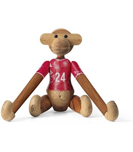 Kay Bojesen Abe X DBU Kvinde Mellem H: 27 cm - Teak/Limbatræ Ny holdkammerat til alle i rødt og hvidt. Med Kay Bojesen Abe x DBU er to af de største danske nationalikoner gået sammen for med humor, kreativitet og det gode håndværk at hylde sammenholdet og stoltheden over at stå sammen side om side fra leg til landshold. Og ligesom fodboldens verden byder på rækker og ligaer fra miniput til megastjerne, så kan du selvfølgelig også få Kay Bojesen Abe x DBU i den størrelse, der lige præcis passer ind i dit fanbarometer. Aben fås iklædt kvindeandsholdets flotte påmalede hjemmebanetrøjer, der begge er fortolket i tråd med figurhistorien og Kay Bojesens DNA helt ned til den mindste detalje, så de to trøjedesigns står så tæt som muligt på originalen og alligevel med deres helt eget tvist. Aben kommer i det klassiske mix af FSC-certificeret teak og kontrolleret limbatræ. Samarbejdet med DBU sætter Kay Bojesens originale fortællinger i træ i en ny kontekst og tilføjer ydmygt og med et glimt i øjet et funklende nyt kapitel til en i forvejen smilende og levende designarv. Designer: Kay Bojesen Mål: Højde: 27 cm Bredde: 29 cm Dybde: 11 cm Materiale: Olieret teak og limbatræ ...