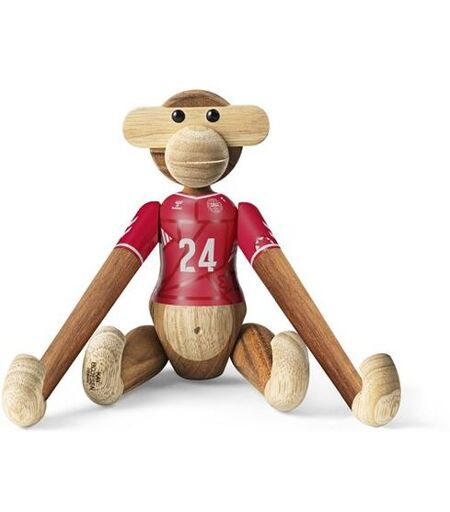 Kay Bojesen Abe X DBU Kvinde Lille H: 18,5 cm - Teak/Limbatræ Ny holdkammerat til alle i rødt og hvidt. Med Kay Bojesen Abe x DBU er to af de største danske nationalikoner gået sammen for med humor, kreativitet og det gode håndværk at hylde sammenholdet og stoltheden over at stå sammen side om side fra leg til landshold. Og ligesom fodboldens verden byder på rækker og ligaer fra miniput til megastjerne, så kan du selvfølgelig også få Kay Bojesen Abe x DBU i den størrelse, der lige præcis passer ind i dit fanbarometer. Aben fås iklædt kvindelandsholdets flotte påmalede hjemmebanetrøjer, der begge er fortolket i tråd med figurhistorien og Kay Bojesens DNA helt ned til den mindste detalje, så de to trøjedesigns står så tæt som muligt på originalen og alligevel med deres helt eget tvist. Aben kommer i det klassiske mix af FSC-certificeret teak og kontrolleret limbatræ. Samarbejdet med DBU sætter Kay Bojesens originale fortællinger i træ i en ny kontekst og tilføjer ydmygt og med et glimt i øjet et funklende nyt kapitel til en i forvejen smilende og levende designarv. Designer: Kay Bojesen Mål: Højde: 18,5 cm Bredde: 19,5 cm Dybde: 6,5 cm Materiale: Olieret teak og limbatræ ...