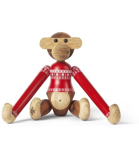 Kay Bojesen Abe Julesweater 2024 - lille Kay Bojesen Abe i en unik juleudgave bærer en rød julesweater, der smelter sammen med den verdenskendte designklassiker og julens hygge. Kay Bojesen Abe Julesweater 2024 er lavet i FSC-certificeret teak og fås i flere størrelser. Sweateren har et klassisk mønster med julestjerner og snefnug i hvid, mens de smalle bånd ved ærmerne prydes af et julerudemønster. Den røde farve er omhyggeligt malet, og det hvide mønster er præcist printet for at sikre et gennemført og autentisk look. Kombinationen af klassiske julefarver og Kay Bojesens humoristiske design gør aben til et livligt indslag i moderne juleindretning. Abe Julesweater 2024 er både nostalgisk og nyskabende, og tilføjer et kærligt kapitel til Bojesens ikoniske træfigurer. Designer: Kay Bojesen Materiale: Olieret teak, olieret limba og maling Mål: H: 18,5 cm B: 19,5 cm D: 6,5 cm ...
