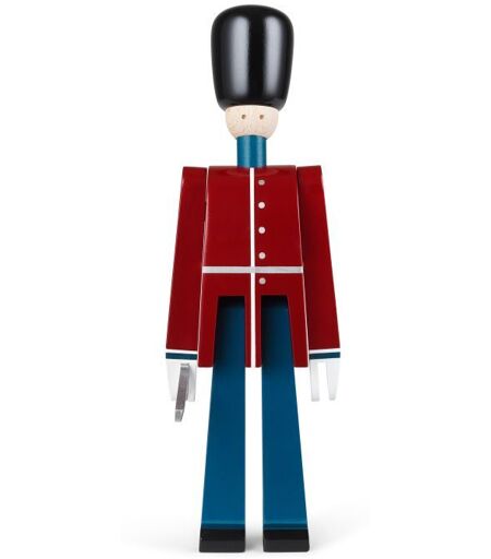 Kay Bojesen Officer med Sabel : 22,5 cm - Rød/Blå//Hvid Inspireret af Danmarks nationalsymbol fra Amalienborg Slotsplads, skabte Kay Bojesen sine håndmalede gardere, som blev lanceret i anledningen af Kong Christian X's 70 års fødselsdag. Kay Bojesen designede officeren i 1942 og nu genintroduceres officeren endnu engang, som leder af garderne. Officeren er et originalt design fra Kay Bojesen og er en ideel gaveidé for både børn og voksne. Tip! Figuren bør ikke stå i direkte sollys. Designer: Kay Bojesen Materiale: FSC-certificeret malet bøgetræ Mål: Højde: 22,5 cm Bredde: 7 cm Dybde: 5 cm Vedligeholdelse: Tørres over med en tør klud Bør ikke stå i direkte sollys. ...