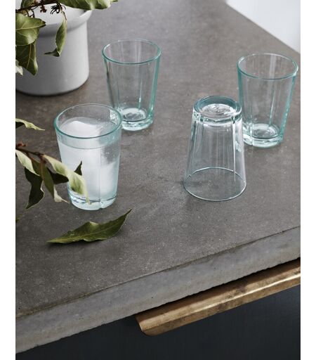 Klassiske glas fra Rosendahls Grand Cru i en genanvendt udgave Grand Cru Recycled drikkeglas er originaler fra Rosendahls eksisterende sortiment. De er fremstillet af 100% genbrugsglas i topkvalitet. Designet følger tidens ånd på en elegant og tidløst måde – et funktionelt glas, som kan stables og på den måde reducere skabspladsen. De er robuste og er perfekte til hverdagsbrug. Farven på glasset er unik og kan variere, alt efter hvilket glas, der genanvendes. Dimensioner (HxØ): 10,5 x 7,5 cm Volume: 22 cl Materiale: Maskinpresset genanvendt glas Farve: Transparent grønt glas Tåler opvaskemaskine ved 55º 4 stk pr. pakke. ...