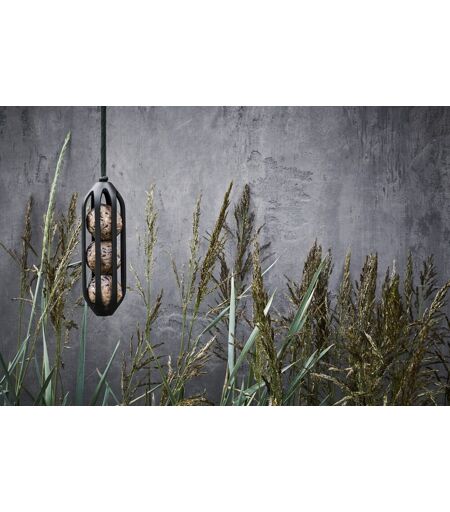 Byd småfugle velkommen i haven Rosendahl Birds skaber liv og fuglesang, byd småfugle velkommen i haven. Den kan nemt hænges op i haven eller på altanen. Birdsmejsekugleholder er skabt i 100% genanvendt plast, og snoren er lavet i genanvendt PET, den fungerer både som ophæng og lås og fyldes ved at trække i snoren. Den fås i en afdæmpet grøn farve, så den falder godt ind i havens naturlige miljø. Foderkuglen er designet og produceret i Danmark. Den er skabt i 100% genanvendt plast, hvor af alt plast kommer fra danske husholdninger. Dimensioner (HxØ): 20 x 7 cm Materiale: 100% genanvendt plast og genanvendt PP Farve: Grøn Brud- og frostsikker Designer: Signe Wenneberg ...