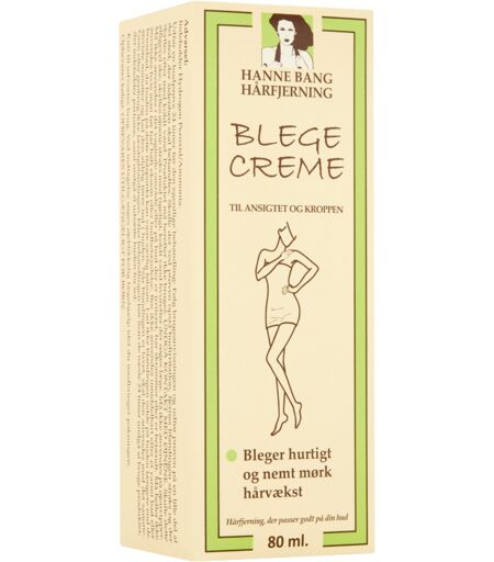 Hanne Bang Blegecreme er en creme til krop og ansigt, som hurtigt og effektivt bleger mørk hårvækst. De uønskede mørke hår bliver mindre synlige, og den blegede effekt holder i op til 2-4 uger. Pakken indeholder to forskellige cremer, der skal blandes sammen og påføres på de uønskede mørke hår. Blandingen skal sidde og trække i ca. 15 minutter, hvorefter hårvæksten vil være bleget, så den falder i med hudfarven. Dette er en super smart løsning til at skjule uønsket hår, hvis du ikke ønsker at vokse eller barbere dem væk. Indeholder: 1 stk. Aktiveringscreme 40 ml 1 stk. Blegecreme 40 ml 1 stk. Blandingsskål 1 stk. Lille spartel til opblanding Fordele: Blegecreme til uønskede mørke hår Holder i op til 2-4 uger Hårene falder i et med huden Den er mild og skånsom mod huden Velegnet til både ansigt og krop Anvendelse: Følg brugsanvisningen nøje Bruges på ren og tør hud Bland de to cremer sammen i den ønskede mængde Påfør blandingen på hårvæksten med spartlen Lad virke i 15 minutter Skyl huden grundigt OBS: Emballagen kan variere. ...