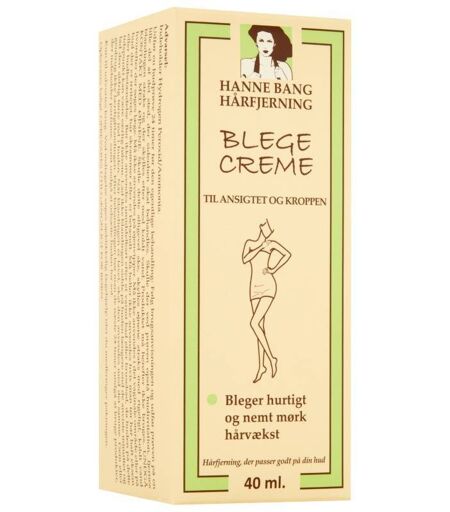 Hanne Bang Blegecreme er en creme til krop og ansigt, som hurtigt og effektivt bleger mørk hårvækst. De uønskede mørke hår bliver mindre synlige, og den blegede effekt holder i op til 2-4 uger. Pakken indeholder to forskellige cremer, der skal blandes sammen og påføres på de uønskede mørke hår. Blandingen skal sidde og trække i ca. 15 minutter, hvorefter hårvæksten vil være bleget, så den falder i med hudfarven. Dette er en super smart løsning til at skjule uønsket hår, hvis du ikke ønsker at vokse eller barbere dem væk. Indeholder: 1 stk. Aktiveringscreme 20 ml 1 stk. Blegecreme 20 ml 1 stk. Blandingsskål 1 stk. Lille spartel til opblanding og påføring Fordele: Blegecreme til uønskede mørke hår Holder i op til 2-4 uger Hårene falder i et med huden Den er mild og skånsom mod huden Velegnet til ansigtet og kroppen Anvendelse: Følg brugsanvisningen nøje Bruges på ren og tør hud Bland de to cremer sammen i den ønskede mængde Påfør blandingen på hårvæksten med spartlen Lad virke i 15 minutter Skyl huden grundigt ...
