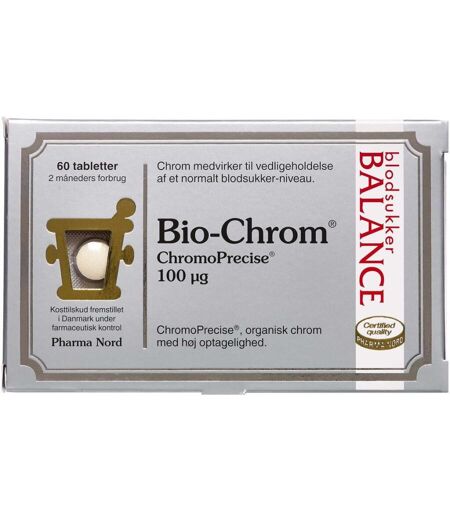 Bio-Chrom er et kosttilskud, som bidrager til en normal omsætning af næringsstoffer fra kosten og til at opretholde et normalt blodsukkerniveau. Andre pakningsstørrelser - Dispenseringsform Tabletter Dosis og anvendelse 1 tablet dagligt for voksne samt børn på 11 år og derover. Den anbefalede daglige dosis må ikke overskrides. ...