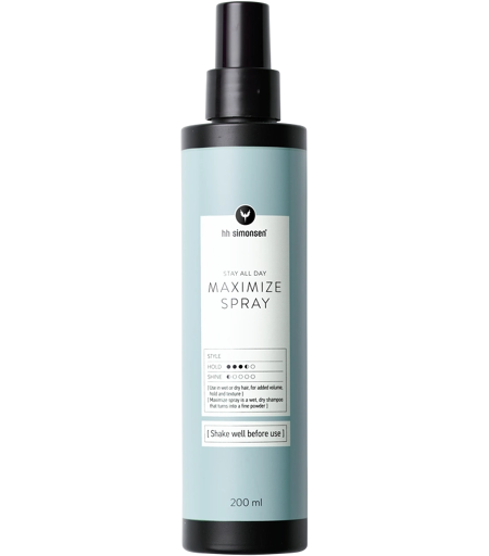 HH Simonsen Maximize Spray er en yderst volumengivnede spray, som er det perfekte valg til dig, der ønsker et rodet look. Denne spray puster på et split sekund masser af tekstur og fylde til alle hårtyper, og efterlader håret fuld af liv. Den fungerer som en våd tørshampoo, som forvandles til et helt fint pulver. Den kan både bruges i tørt og fugtigt hår, og efterlader håret med et medium hold. Fordele: Volumengivende spray Teksturgivende Anbefales til alle hårtyper Perfekt til at skabe et rodet look Medium hold Anvendelse: Ryst flasken grundigt Påføres i tørt eller fugtigt hår Style som ønsket ...
