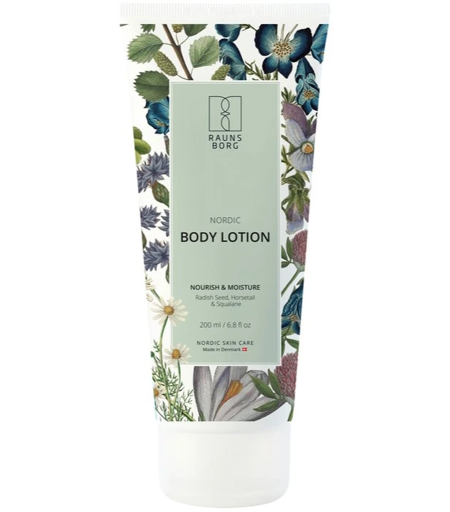 Raunsborg Body Lotion 200 er en nærende bodylotion, som forkæler huden med intensiv, dybdevirkende fugt og efterlader den frisk, gennemfugtet og silkeblød. Den lette formel absorberes hurtigt – uden at fedte – takket være naturlig olie fra radisefrø, mens padderok booster hudens elasticitet ved at stimulere dens egen produktion af collagen og elastin. Med en velafbalanceret fedtprocent på 16,15% og en forfriskende duft af rabarber og solbær er Raunsborg Body Lotion ikke bare en plejende oplevelse – den er en sanselig forkælelse, du vil glæde dig til hver dag. Perfekt til dig, der vil give din hud mere end bare fugt – nemlig naturlig vitalitet og velvære. Fordele: Bodylotion Gennemfugter huden i dybden Gør huden blød, smidig og frisk Trænger hurtigt ind i huden Fedter ikke Padderok stimulerer collagen og elastin Virker opstrammende Fedtprocent på 16,15% Giver huden naturlig glød og vitalitet Frisk duft af rabarber og solbær Anvendelse: Påføres på ren og tør hud Massér ind med blide, cirkulære bevægelser Anvendes dagligt for optimal effekt Velegnet til hele kroppen Ideel efter bad Ingrediensliste: Aqua, Hydrogenated Polydecene, Squalane, Tribehenin PEG-20 Esters, Caprylic/Capric Triglyceride, Propylene Glycol Dipelargonate, Raphanus Sativus Seed Extract, Glycerin, Phenoxyethanol, Acrylates/Vinyl Isodecanoate Crosspolymer, Sodium Benzoate, Parfum, Butylene Glycol, Equisetum Arvense Extract, Xanthan Gum, Helianthus Annuus Seed Oil, Rosmarinus Officinalis Leaf Extract ...
