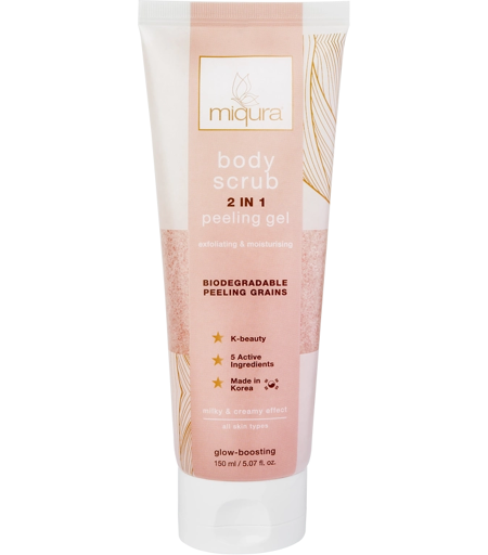 Miqura Body Scrub 2 in 1 er er et skønt 2-i-1 produkt, der både fungerer som en body scrub og en bodywash. Den har en lækker gelé-agtig konsistens med bionedbrydeligt glimmer, og den giver en blid eksfoliering af huden, som fjerner døde hudceller. Huden bliver effektivt renset, plejet og fugtet, og den lækre gel skummer let op når den kommer i kontakt med vand, og får en blød og cremet konsistens. Den kan bruges til alle hudtyper, og har en helt fantastiske duft. Fordele: Bodyscrub -og bodywash i én Anbefales til alle hudtyper Lækker gelé-agtig konsistens Indeholder bionedbrydeligt glimmer Giver en blid eksfoliering Fjerner døde hudceller Renser, plejer og fugter Skummer let op ved kontakt med vand Sød og skøn duft Anvendelse: Massér geléen ind på fugtet hud Skyl derefter med vand ...