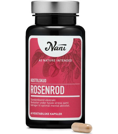 Nani Rosenrod er et standardiseret ekstrakt, som beskytter under fysisk stress samt bidrager til optimal mental aktivitet. Rosenrod bidrager med udholdenhed ved sportsudøvelse, har en gavnlig effekt på hjerte/kar systemet ved at beskytte mod stress samt hjælper med at stimulere nervesystemet. Dispenseringsform Kapsler. ...