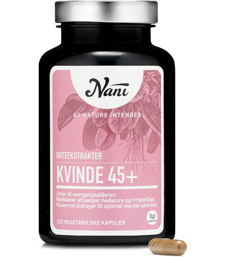 Nani Kurpakke Kvinde 45+ er et innovativt kosttilskud med udvalgte urteekstrakter i praktiske dagsdoser. Urter udvalgt specielt med fokus på overgangsalderen. ...
